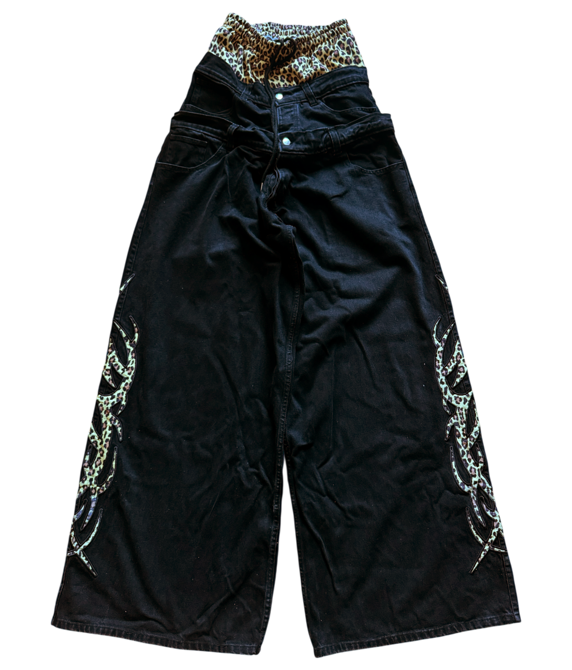 THE TRIPLE STACKED CHEETAHS REDEFINE BAGGY DENIM WITH A DISTINCT TRIPLE-WAISTBAND CONSTRUCTION.